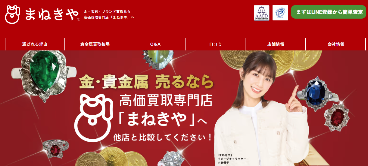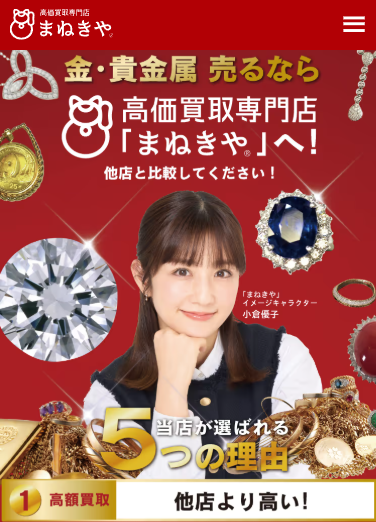 金・プラチナ・貴金属の買取に強い「まねきや」とは?