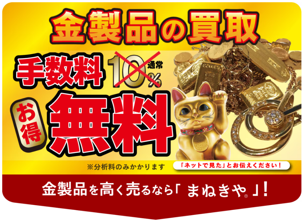 - 金製品買取の手数料10%が無料