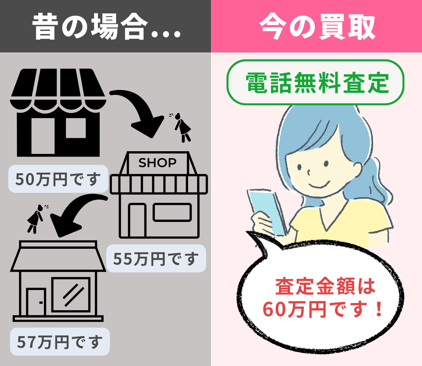迷っている方こそ、まずはまねきやの電話・LINE査定をして、買取相場を知っておきましょう。