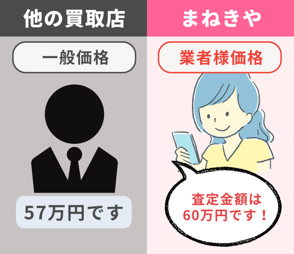 - 一般買取価格ではなく、いわゆる「業者価格」で高価買取
