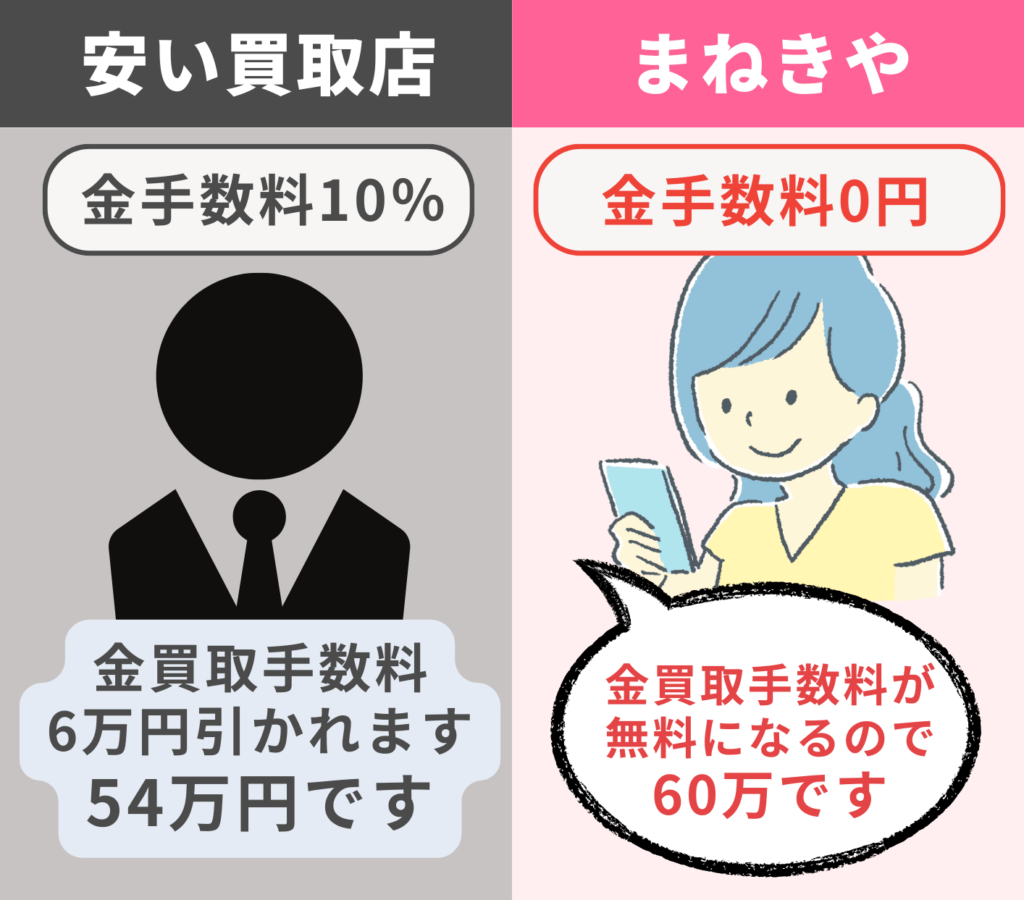 買取店の中でも、手数料やキャンペーンで買取価格は大きく変わる傾向にあります。