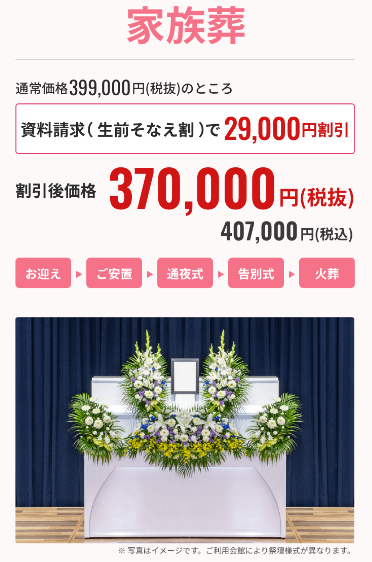 | 家族葬 | →生前そなえ割で370,000円 |