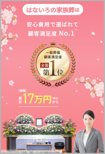 はないろは、「葬儀費用の透明性No.1」「顧客満足度No.1」になっています。