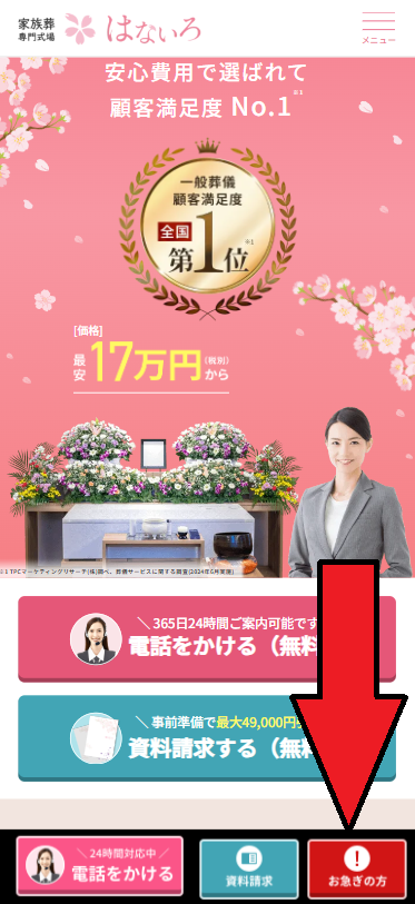 まずは、はないろ公式サイトの「お急ぎの方というボタン」から電話をかけて今後の流れを確認しましょう。